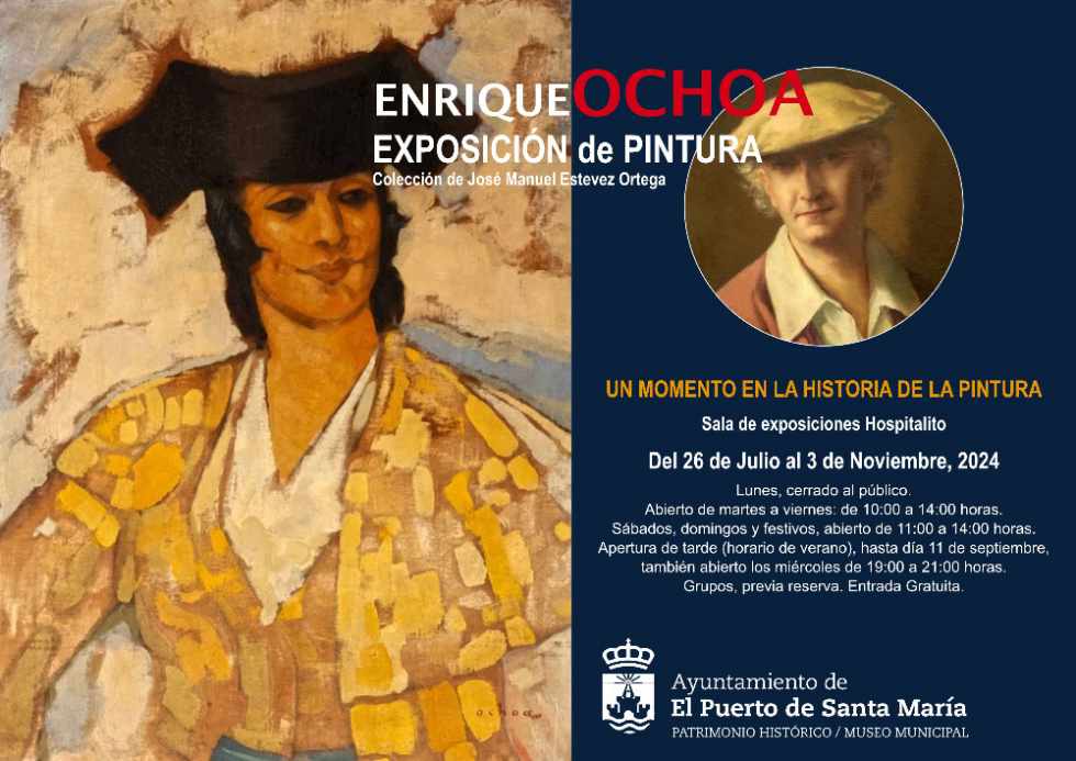El Hospitalito acoge hasta el 3 de noviembre la exposición “Un momento en la historia de la pintura”, que muestra 33 cuadros del portuense Enrique Ochoa (1891 – 1979), y una extensa obra gráfica, pertenecientes a la colección de José Manuel Estévez Ortega, incansable estudioso y coleccionista de la obra de Ochoa, que la cede temporalmente al efecto.