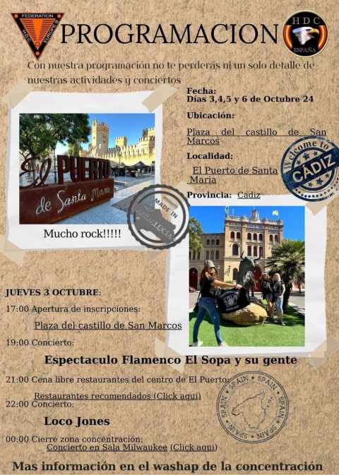 La VI Concentración del Harley Davidson Club ya está en marcha y se extenderá hasta el domingo 6 de octubre, con una variada programación de conciertos en la emblemática Plaza del Castillo de San Marcos. Este evento es organizado por el Club HDC, presidido por Marcos Bellido, en colaboración con el Ayuntamiento. Este año, la cita tiene un valor añadido, ya que el club ha sido el encargado de organizar el Rally de la Federación Española de Harley.