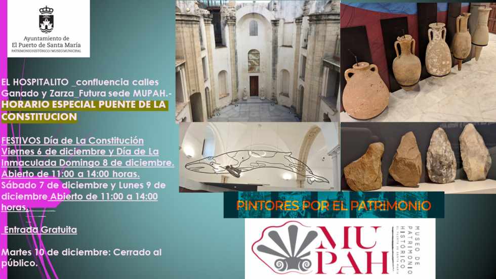 El teniente de alcalde de Patrimonio Histórico, Enrique Iglesias, señala que de esta forma se posibilita que tanto los portuenses como los numerosos visitantes que se acercan a El Puerto estos días puedan aprovechar dichas jornadas para conocer las colecciones museísticas, unas fechas que, a los fondos habituales, unen los 27 cuadros que conforman la exposición “Pintores por el patrimonio”, iniciativa organizada por la Asociación de Defensa del Patrimonio Histórico de El Puerto de Santa María, Betilo, que cuenta con la colaboración de la Concejalía de Patrimonio Histórico, Cuadros La Galería y Bodegas Gutiérrez Colosía, y que se mantiene hasta el día 29.