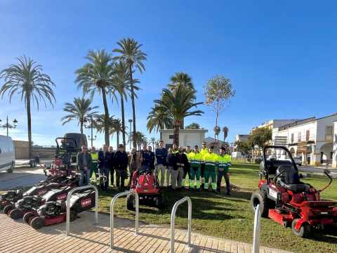 El alcalde de El Puerto de Santa María, Germán Beardo, junto al teniente de alcalde de Desarrollo Sostenible, Millán Alegre, ha supervisado hoy en Pozos Dulces la nueva maquinaria del contrato de Gestión Integral del Paisaje Urbano. Este contrato, adjudicado a Althenia S.L.U, que supone una inversión de más de 2,5 millones de euros, introduce tecnología de última generación para mejorar la eficiencia y sostenibilidad del mantenimiento de las zonas verdes.