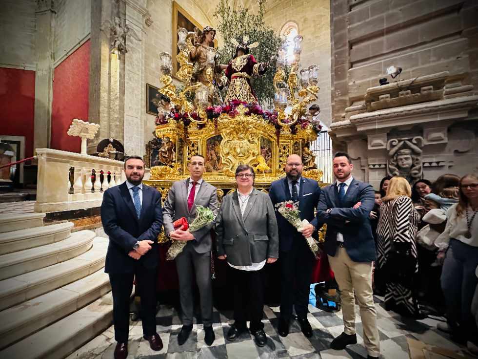 Posteriormente, tras asistir al Pleno Extraordinario, se han sumado los tenientes de alcalde Javier Bello y Jesús Garay, quienes junto a Calleja y Alegre han realizado la entrega floral a los titulares de la Hermandad. Asimismo, han trasladado a la Junta de Gobierno, encabezada por la Hermana Mayor Ana Ortega, sus mejores deseos para una salida procesional llena de recogimiento, belleza y fervor.