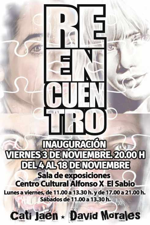 El Centro Cultural Municipal Alfonso X el Sabio (calle Larga, 89), acoge este viernes, a las 20:00 horas, la inauguración de “Reencuentro”, una iniciativa que contará con la presencia del concejal de Cultura, Enrique Iglesias, que muestra obras de Cati Jaén y David Morales, quienes también asistirán, y que estará abierta al público hasta el sábado 18 de noviembre inclusive.