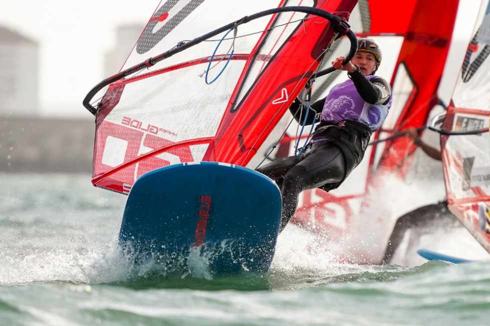 Entre las mujeres, a la noruega Tuva Oppedal (2,5,4) le sale una gran rival en la checa Katerina Svikova (3,2,4,5) después de verse obligada a descartar dos pinchazos de hoy. Oppedal sigue líder de la general y entre las juveniles pero le empata a puntos la checa con un mejor día. El tercer puesto a ocho puntos lo ocupa la alemana Theresa Steinlein (1,3,3,7,1), a quien la subida del viento la mete en el podio absoluto como segunda juvenil. Las tres abren brecha con casi veinte puntos de distancia con la siguiente, la estona Ingrid Puusta. No ha sido un buen día para la única española en esta flota, la balear Barbara Winao, que baja al vigesimotercer puesto de la general.