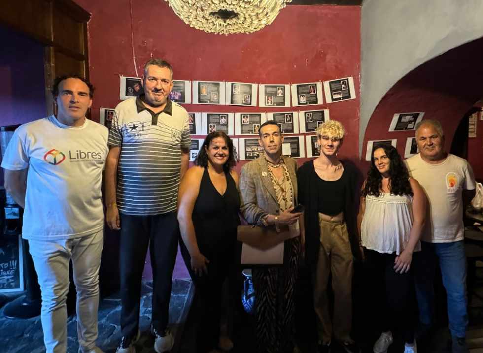 El teniente de alcalde de Fiestas, David Calleja, y la presidenta de la Asociación Libres LGTBIQ+ en El Puerto, Elisa Isabel Ortega, inauguraron anoche en el pub Stardust, en Plaza de las Galeras Reales, 4, dos exposiciones que se podrán contemplar hasta el 15 de julio. El acto contó también con las presencias de Zeus Bueno, secretario de la Asociación, y los miembros de la entidad Elizabeth María Bueno, José Manuel de la Flor, Rafael Camacho y Rafael Jerez.