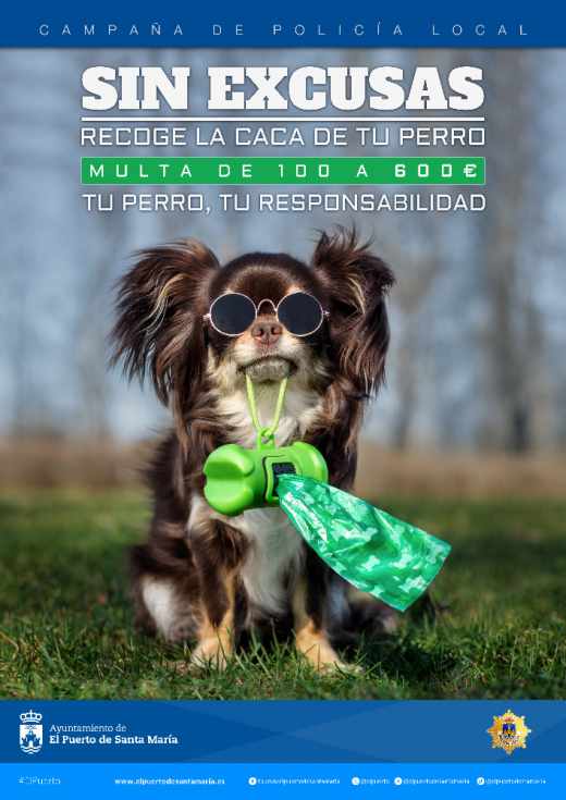 Con el objetivo de mejorar la limpieza en los espacios públicos, el Ayuntamiento de El Puerto de Santa María, a través de la Concejalía de Policía Local, y en colaboración con Medio Ambiente, ha puesto en marcha una campaña de concienciación sobre la recogida de excrementos caninos. Bajo el lema "Sin excusas, recoge la caca de tu perro", la iniciativa apela a la responsabilidad de los propietarios de mascotas para mantener limpias las calles, aceras y parques de la ciudad.