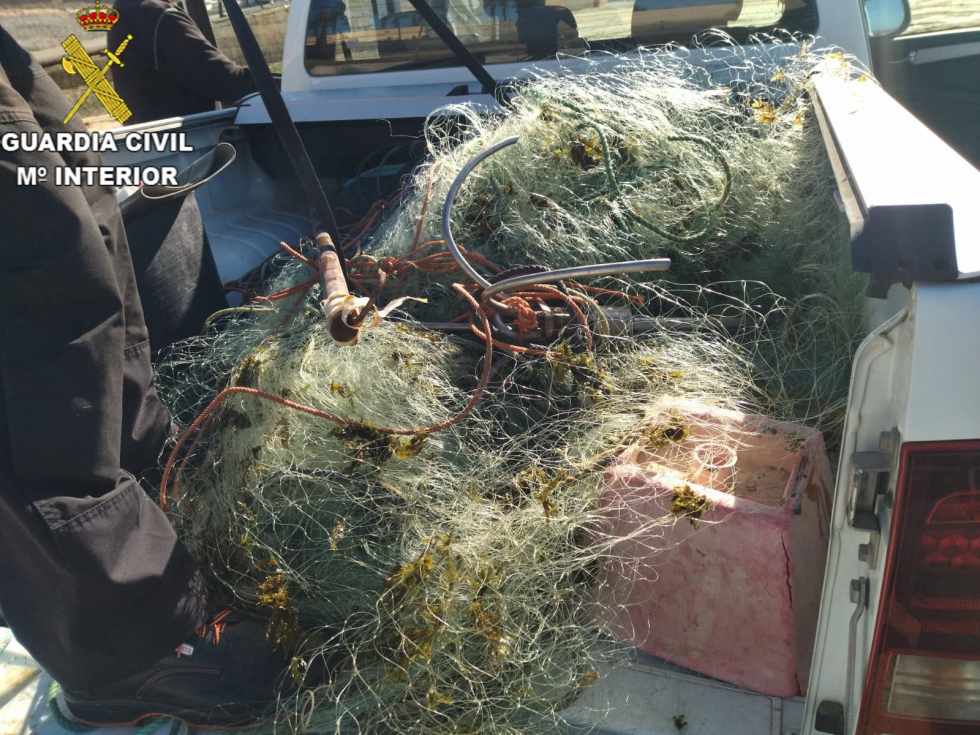 Intervenidos más de 200 metros de trasmallo en La Caleta durante una operación contra la pesca ilegal de erizos y ostiones