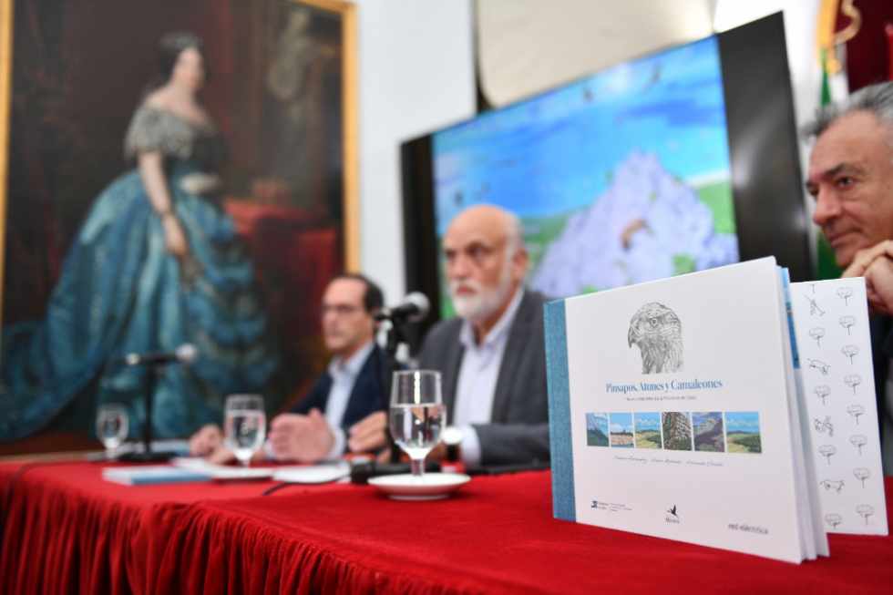 ‘Pinsapos, atunes y camaleones. Tesoros naturales de la provincia de Cádiz’ es el título de la última obra patrocinada por el Servicio de Publicaciones de la Diputación de Cádiz, con la edición de la Fundación Migres y la colaboración de la Red Eléctrica. Una “celebración de la naturaleza” que trata de dar a conocer al público general la gran biodiversidad que existe en la provincia de Cádiz. La obra, coordinada por Federico Fernández con ilustraciones de Arturo Redondo y textos de Fernando Olmedo, ha sido presentada en el Palacio Provincial ante muchos de los más de 30 naturalistas que han aportado sus conocimientos para el enriquecimiento de la publicación.