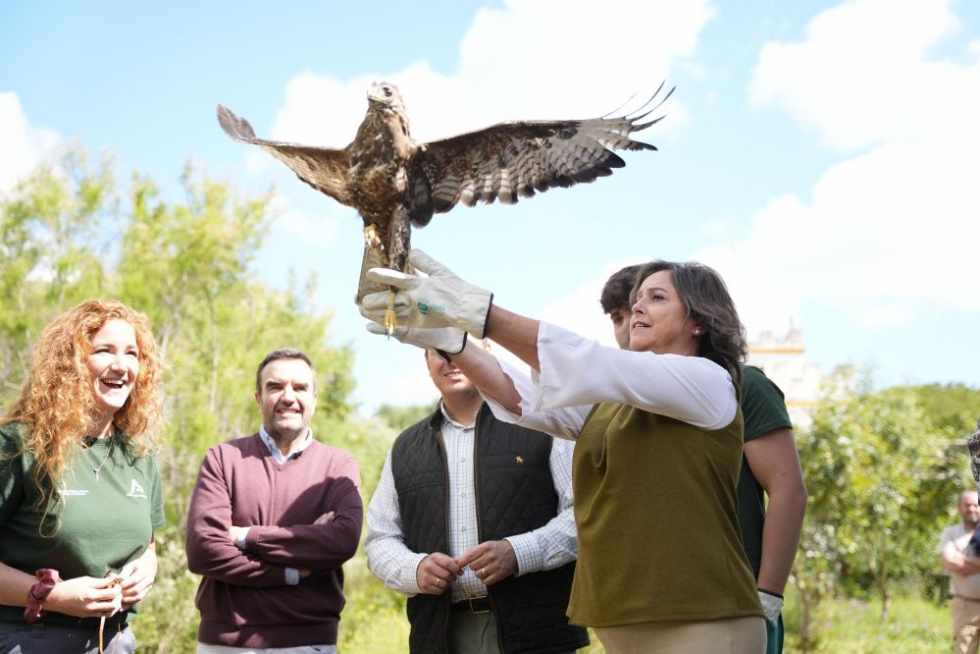 Durante su visita a El Puerto de Santa María, Catalina García ha recorrido también las instalaciones del Centro de Recuperación de Especies Amenazadas (CREA) Dunas de San Antón y ha sido la encargarda de liberar un águila ratonera. Este centro, gestionado por la Agencia de Medio Ambiente y Agua de Andalucía, forma parte de la red autonómica destinada a prestar atención veterinaria especializada a la fauna silvestre protegida que llega en situación de vulnerabilidad.