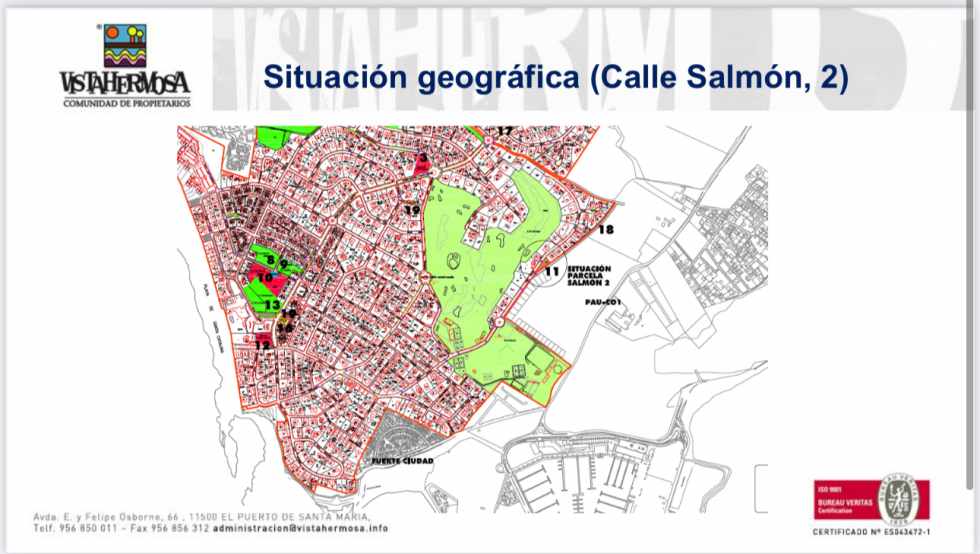 La Comunidad de Propietarios de Vistahermosa informa que se ha abierto el procedimiento de subasta pública de una parcela edificable situada en la calle Salmón, número 2, dentro del núcleo urbano de El Puerto de Santa María.