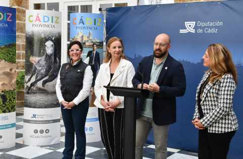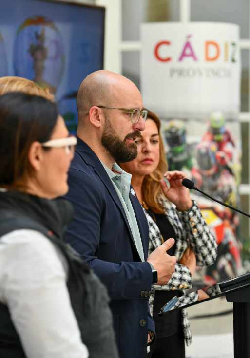 El vicepresidente cuarto y responsable de Turismo de la Diputación provincial de Cádiz, Germán Beardo, ha presentado esta mañana en el patio cubierto de la institución provincial la original campaña de ‘marketing espectacular’ que se llevará a cabo este fin de semana durante la celebración del Gran Premio de España MotoGP 2025, donde un globo aerostático con la imagen de la Gitana de Antonio Felipe servirá de soporte publicitario del destino turístico provincia de Cádiz.