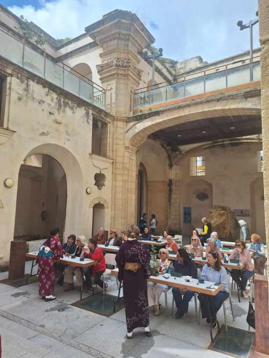 Más de 30 embajadoras de la Fiesta de los Patios participaron como alumnas en este taller, donde aprendieron a realizar elegantes centros de mesa que permanecerán expuestos durante los días de celebración en el patio del histórico edificio. La propuesta no solo ha embellecido el entorno, sino que también ha reforzado el vínculo entre tradición local y expresión artística internacional.
