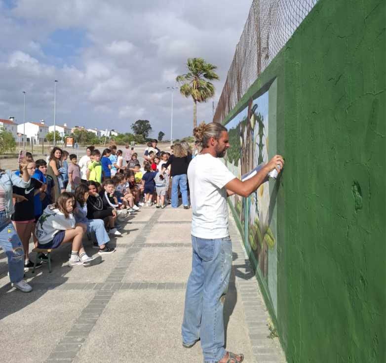 Durante toda la semana, el alumnado del CEIP Castillo Doña Blanca ha trabajado en las aulas de forma lúdica y reflexiva sobre conceptos como la corresponsabilidad en el hogar y en la comunidad, la igualdad en la toma de decisiones y el reparto equitativo de tareas. A través de dinámicas, juegos, vídeos y actividades teatrales, se ha fomentado el diálogo y la conciencia sobre el valor del trabajo compartido y la importancia de construir juntos un entorno más justo y equilibrado. Fruto de este proceso nace un mural lleno de vida, color y simbolismo, que recorre el muro de la pista deportiva del centro. Diseñado con la participación activa de los niños y niñas del colegio, sus familias y vecinos de esta barriada rural de El Puerto, el mural ha sido guiado por un monitor de muralismo y culminado por el artista portuense Francisco Mesa Delgado, conocido artísticamente como Francisco Prainz.