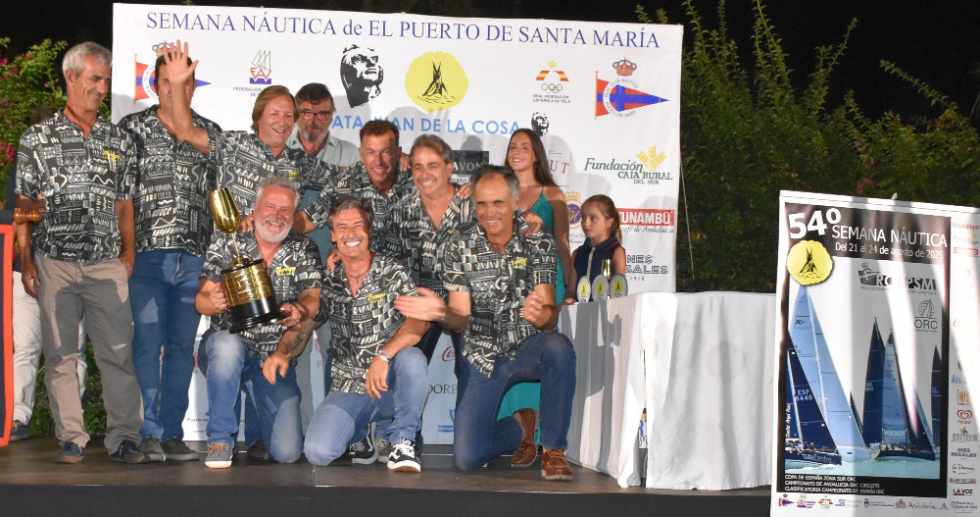 La tripulación del ‘Brujo’ de Federico Linares levantó este domingo su undécimo Catavino de Oro como campeón absoluto de la 54ª Semana Náutica de El Puerto de Santa María, en una ceremonia vibrante celebrada en La Cabaña de Pablo Grosso, en El Puerto de Santa María. El acto fue presidido por Santiago Villagrán, presidente del RCN El Puerto de Santa María, acompañado por Ignacio González Nieto, concejal de Deportes y parlamentario andaluz.