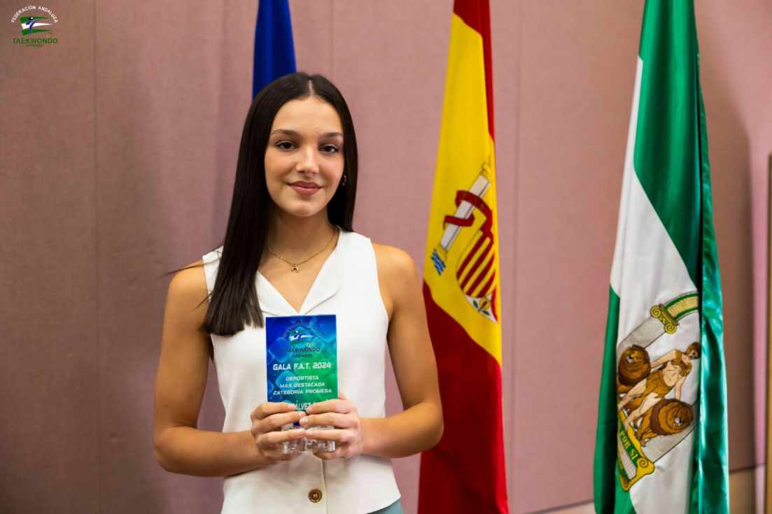 La deportista portuense Gema Gálvez ha sido galardonada este pasado fin de semana en Mollina (Málaga) con el Premio a la Mejor Deportista Promesa Femenina, durante la gala anual de la Federación Andaluza de Taekwondo, en la que se reconoció a los clubes y competidores más destacados de la temporada 2024.