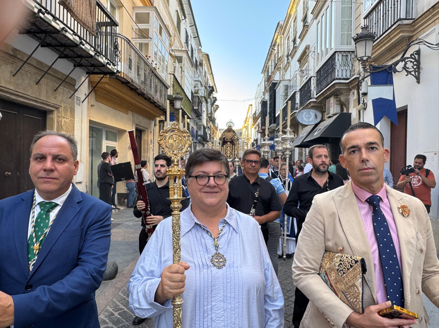 La imagen de María Santísima partió a las 18:30 de la Basílica, emprendiendo Plaza de España, Palacios y Pedro Muñoz Seca, para llegar a las 19:00 horas a la Capilla de las Hermanas Carmelitas. El acompañamiento musical correspondió a Vía Sacra y al Coro del Colegio de las Carmelitas cuando la imagen entró en la Capilla. Además, una representación del alumnado del Colegio formó parte del cortejo. La imagen ha estrenado un manto bordado y una corona,diseñados por el teniente de alcalde.