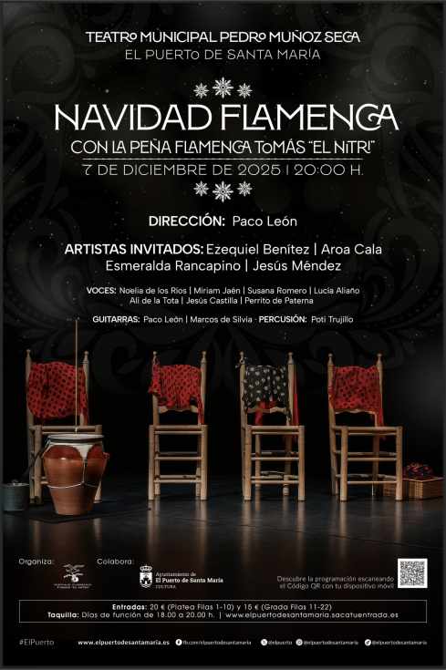 El Teatro Municipal Pedro Muñoz Seca acogerá el espectáculo “Navidad Flamenca con la Tertulia Flamenca Tomás el Nitri” el domingo 7 de diciembre, a las 20:00 horas.