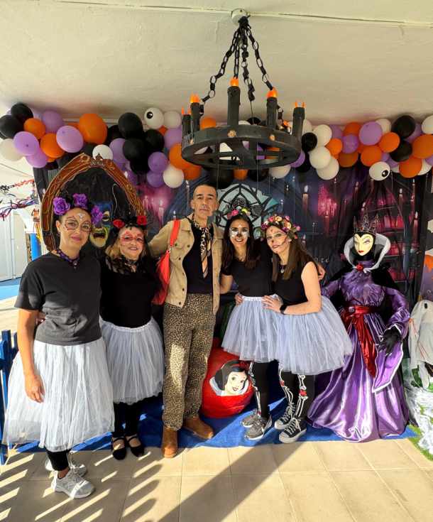 Miriam Andrade ha agradecido al edil que atendiera la solicitud de visitar el Centro y compartir con ellos parte de la jornada, así como el afecto que les ha mostrado. La directora explica que han dividido la decoración en dos temáticas, correspondiendo la del edificio externo a la historia de Blancanieves y la del interior a La Catrina. Por lo que respecta a los disfraces, los del alumnado son de temática libre mientras que el profesorado atiende a la temática propuesta por la Concejalía. Andrade apunta que Halloween registra un gran seguimiento popular en la zona de El Puerto donde están radicados y que es la cuarta fiesta con dicha temática que organizan.