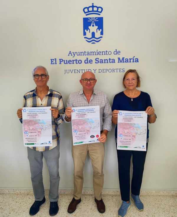 El concejal de Deportes, José Ignacio González Nieto, ha presentado el cartel de la X Carrera Popular y Marcha Solidaria, que, bajo la organización de la ONG Nueva Bahía, se celebrará el domingo 16 de noviembre en el Parque Metropolitano Marisma de Los Toruños y Pinar de la Algaida. El edil ha estado acompañado por el presidente de la ONG, Eduardo Cid, y por la socia de la entidad María Cruz.