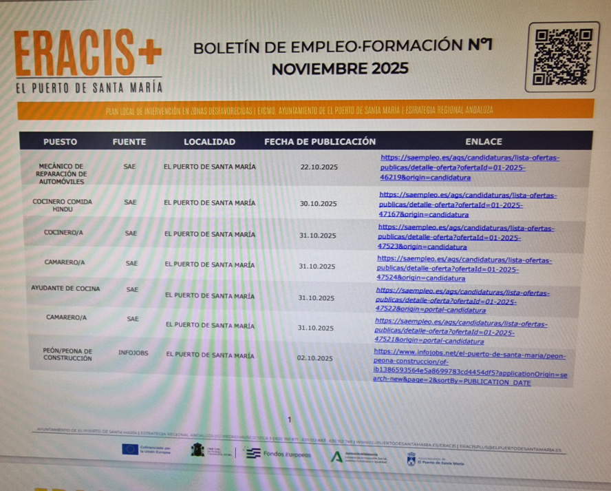 La edil de Bienestar Social, Carmen Lara, señala que las personas interesadas pueden contactar con Eracis + en los teléfonos 635 150 871, 635 152 883, 856 70 68 56 y 956 55 09 03, dirigiéndose al área de Bienestar Social, en la calle Pedro Muñoz Seca, 9, en el correo electrónico eracisplus@elpuertodesantamaria.es a través de la web https://www.elpuertodesantamaria.es/eracis o mediante las redes sociales de Eracis + El Puerto en Facebook, Instagram y Linkedin.