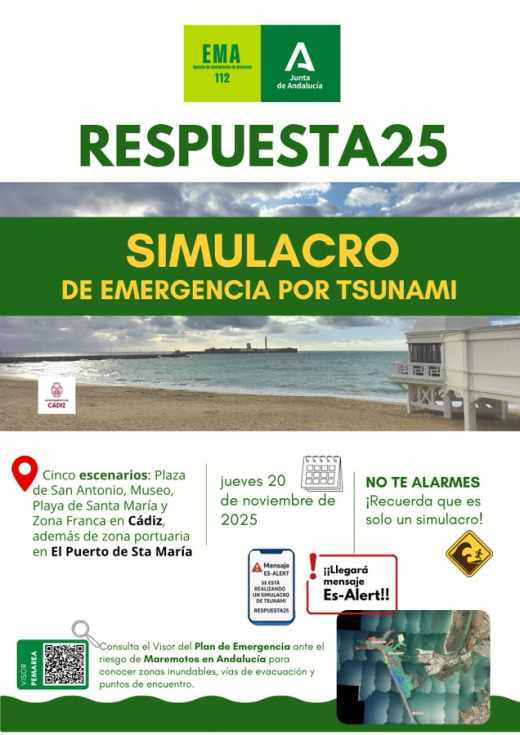 El próximo jueves 20 de noviembre, la Junta de Andalucía llevará a cabo el simulacro de tsunami Respuesta25, un ejercicio de emergencias diseñado para evaluar la capacidad de respuesta ante maremotos en la región.