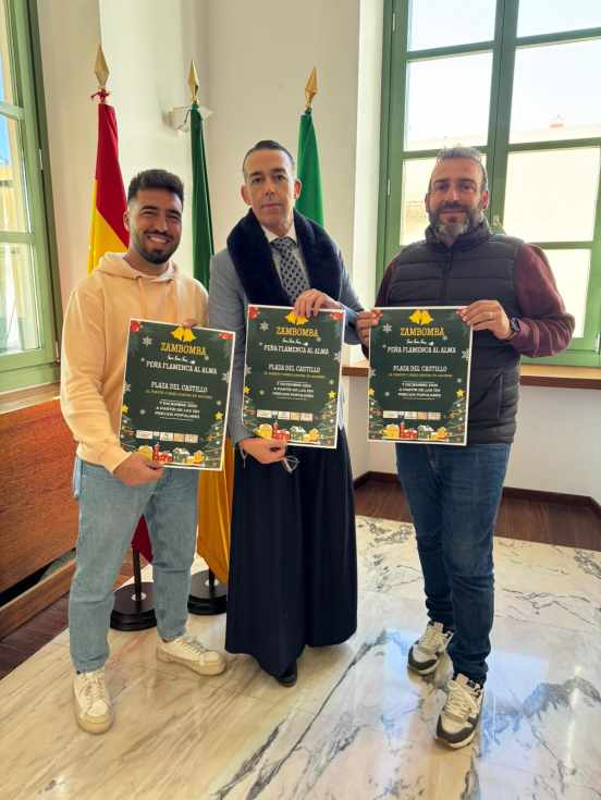 El teniente de alcalde de Fiestas del Ayuntamiento de El Puerto de Santa María, David Calleja, ha presentado el cartel de la Zambomba que la Peña Flamenca Al Alma organiza, con la colaboración de la Concejalía de Fiestas, el domingo 7 de diciembre a partir de las 13:00 horas en la Plaza del Castillo.