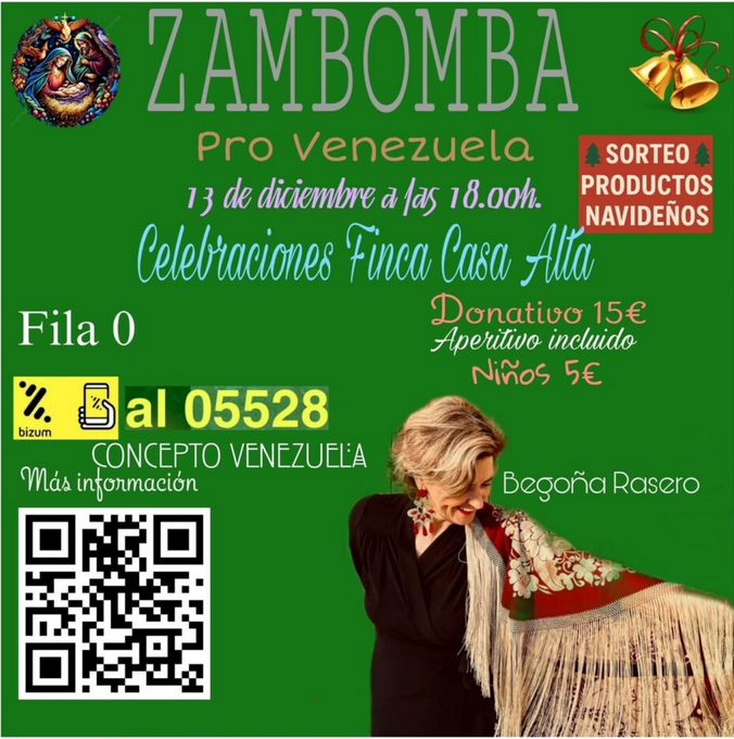 El próximo 13 de diciembre a las 18:00 horas, la Finca Casa Alta acogerá una Zambomba Solidaria Pro Venezuela de Fundación Esperanza, un evento benéfico cuyo objetivo es recaudar fondos para causas humanitarias vinculadas al país latinoamericano.