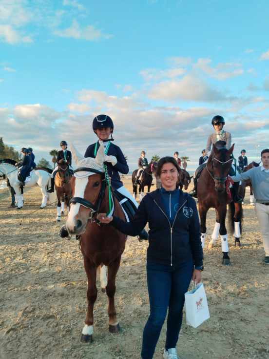 Mención especial merece la más joven del grupo, Martina Jiménez Quero, de tan solo 9 años de edad, que junto a su yegua Mafalda consiguió la medalla de plata en la categoría Benjamín del Campeonato de Andalucía de Doma Clásica 2025. A este logro se suma la medalla de bronce obtenida en la Final de la XI Copa de Doma Clásica 2025, celebrada los días 29 y 30 de noviembre en Medina Sidonia (Cádiz), donde volvió a subir al pódium.