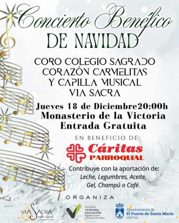 La iniciativa está organizada por la Capilla Musical Vía Sacra y el Colegio Sagrado Corazón Carmelitas, con la colaboración de la Fundación Vedruna Educación y el Ayuntamiento de El Puerto de Santa María, que respalda esta propuesta dentro de su programación navideña.