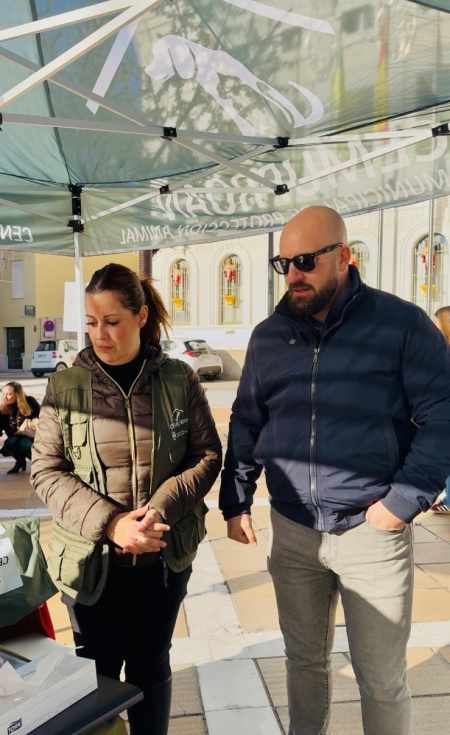 El alcalde de El Puerto de Santa María, Germán Beardo, acompañado por el teniente de alcalde de Presidencia, Javier Bello, ha visitado este lunes el stand instalado por el Centro Municipal de Protección Animal (Cemuproan) en la Plaza Isaac Peral, una acción pensada para acercar a la ciudadanía la importante labor que realiza el centro y promover la adopción responsable de animales.