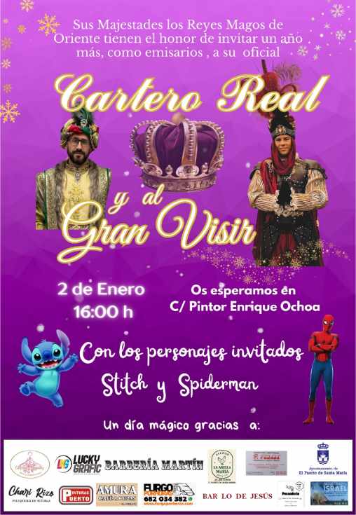 La ciudad recibe este viernes al Cartero Real, que estará presente en varias localizaciones. De esta forma, y con la colaboración de la Concejalía de Relaciones con la Ciudadanía, que encabeza Javier Bello, los pequeños podrán entregar sus misivas en Ronda del Tejar: a partir de las tres de la tarde comenzará una Cabalgata en la Plaza de La Jara discurriendo por calles del enclave hasta finalizar en la Plaza Pepe Jerez. No faltará una animada chocolatada con churros. Además, el Cartero Real estará presente desde las 16:00 horas, en la calle Pintor Enrique Ochoa, en concreto en la Barbería Martín, con los personajes invitados Stitch y Spiderman, junto al Gran Visir. Posteriormente, visitará el local de la Asociación de Vecinos Sudamérica, en la calle Acapulco, a partir de las 16:30 horas.