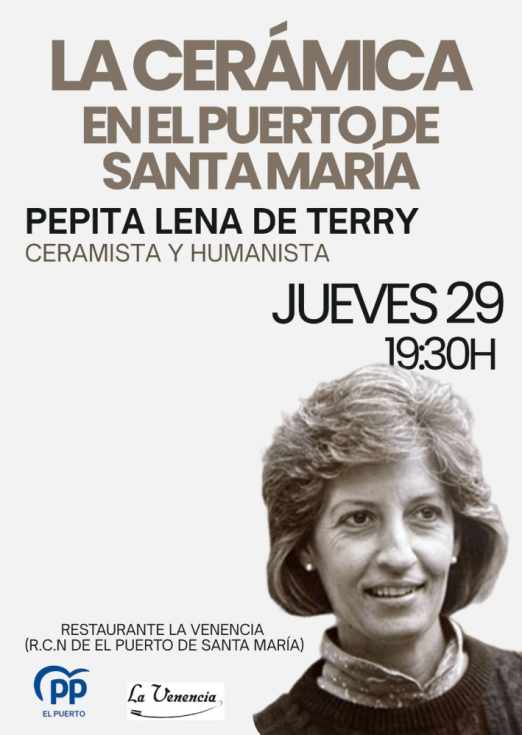 El Partido Popular de El Puerto de Santa María celebrará una nueva edición de su ciclo de Conferencias Populares bajo el título “La cerámica en El Puerto de Santa María”, que estará impartida por la reconocida ceramista portuense Pepita Lena de Terry. El encuentro tendrá lugar el jueves 29 de enero a las 19:30h en La Venencia (Av. de la Bajamar, 78) con entrada libre hasta completar aforo.