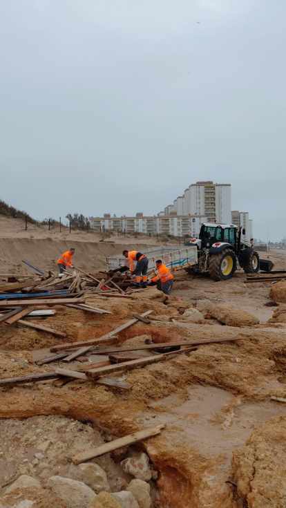 El alcalde de El Puerto, Germán Beardo, ha explicado que los servicios municipales de limpieza, mantenimiento urbano, playas y pinares, Apemsa y alumbrado público están actuando de forma intensiva en distintos puntos de la ciudad. Especial atención al Poblado de Doña Blanca, los entornos costeros de Valdelagrana y Costa Oeste pasando por La Puntilla, donde se está retirando arena del Paseo Marítimo, con casi cerca de 20 camiones, y también los restos de cañas, hojas y ramas que ha traído el río; así como a diversas zonas que han sufrido afecciones significativas. En todos estos puntos ya han comenzado los trabajos de limpieza, bacheo, reparación y puesta a punto de los espacios públicos.