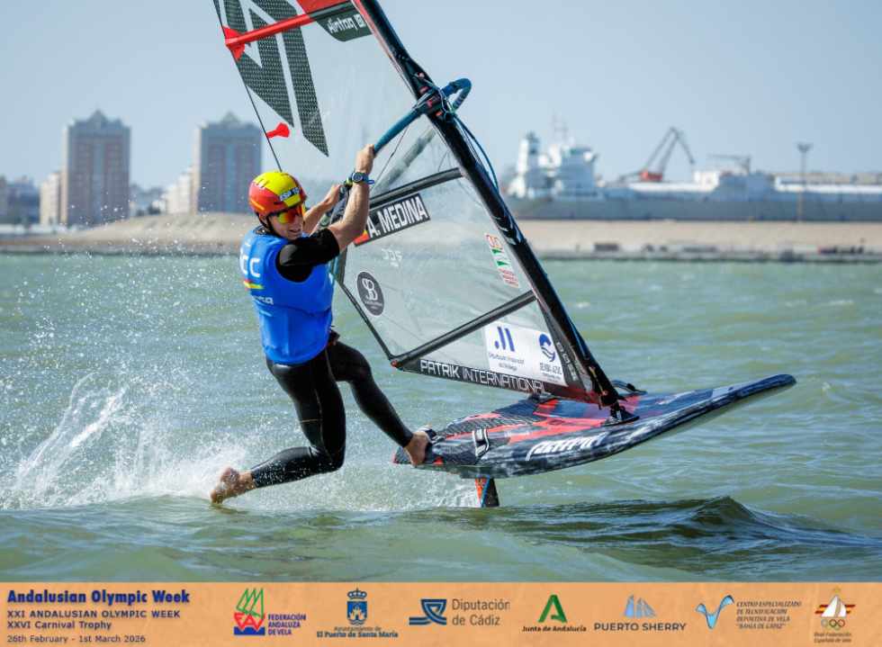 Más alegrías para Andalucía en iQFOiL. El malagueño Antonio Medina (RC El Candado), proclamado campeón de España hace apenas una semana en aguas valencianas, se adjudica ahora la Copa de España en casa tras mantener a raya a su principal rival, el catalán Guillem Segú, segundo a un punto. Medina gana la Copa de España absoluta y Sub 23 desde el quinto puesto de la general, con los cuatro primeros lugares ocupados por deportistas foráneos entre los que vence el eslovaco Robert Kubin.