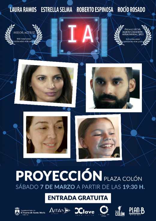 Escrito por los portuenses Jesús Murciano y Jesús Graván, “IA” se estrenó el pasado 3 de octubre en el marco del XIII Concurso de Cortometrajes “Rodando por Jaén”, donde logró dos importantes reconocimientos: el Premio RTVA a la Mejor Creación Audiovisual Andaluza y el Premio a Mejor Actriz, concedido a la actriz cubana Laura Ramos. Tras estos galardones, el cortometraje ha iniciado su distribución nacional e internacional de la mano de MMS Distribuciones. Los asistentes podrán disfrutar de una obra que plantea un interesante debate sobre los límites de la tecnología, los dilemas éticos y el papel de las decisiones humanas en una sociedad cada vez más influida por la Inteligencia Artificial. Tras la proyección, se celebrará una charla-coloquio con la participación del director y del equipo artístico, en la que se abordarán los retos, oportunidades e implicaciones sociales, laborales y emocionales que plantea la IA.