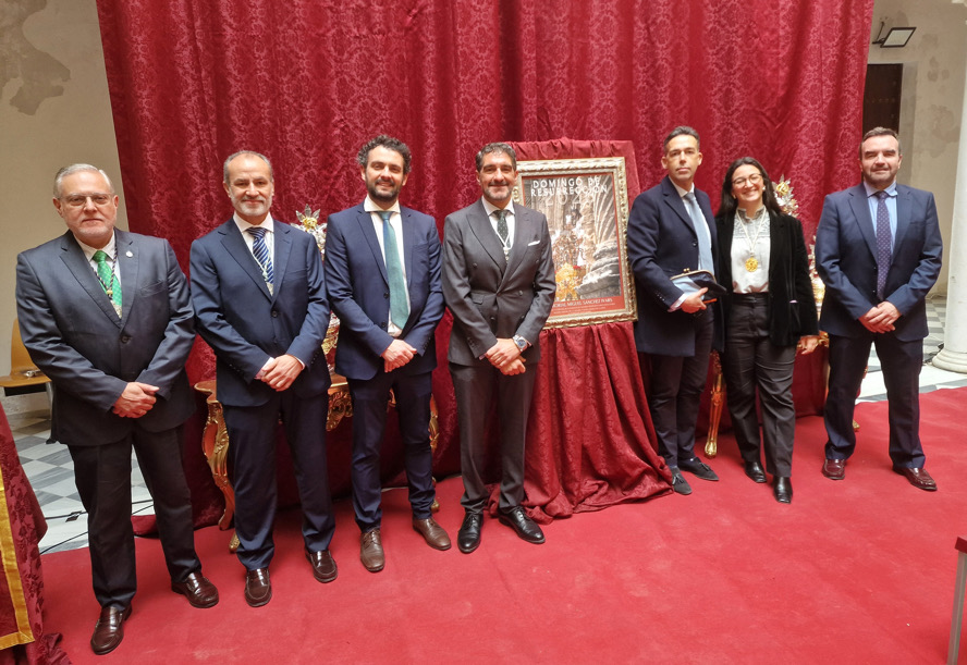 La Hermandad de Nuestro Señor Jesucristo Resucitado, Nuestra Señora de la Alegría y Santa Ángela de la Cruz ha presentado el cartel del Domingo de Resurrección 2026 “Memorial Miguel Sánchez Ivars”, una fotografía del isleño Fernando E. Fossati Aragón, en un acto que ha acogido este mediodía el Palacio de Purullena. El encargado de disertar sobre la obra ha sido Francisco Javier Salguero Bocanegra, uno de los hermanos fundadores. Los tenientes de alcalde de Fiestas, David Calleja, y Hacienda, Millán Alegre, han acompañado a la entidad. En el transcurso del acto, la Hermana Mayor, Ana Lambea Vega, entregó una corbata al pregonero de la Semana Santa 2026, Antonio Manuel Borrego Rivas, como obsequio de la Hermandad por su designación.