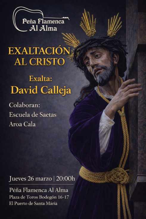 El próximo jueves 26 de marzo, a las 20:00 horas, tendrá lugar la Exaltación al Cristo en la Peña Flamenca Al Alma de El Puerto de Santa María, un acto cargado de fervor y tradición que se enmarca en la antesala de la Semana Santa portuense.