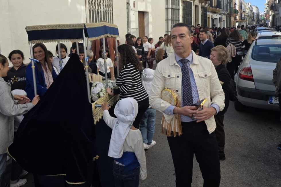 El Colegio La Salle de El Puerto de Santa María ha celebrado su tradicional procesión escolar, una cita ya consolidada en el calendario educativo y cofrade de la ciudad, en la que ha estado presente el teniente de alcalde de Fiestas, David Calleja. En el cortejo han participado en torno a 120 alumnos de Infantil, de entre 3 y 5 años, quienes, junto a sus profesores y varias madres voluntarias, han recorrido las calles Espíritu Santo, Cielo, Cervantes y La Rosa, en las inmediaciones del centro educativo.