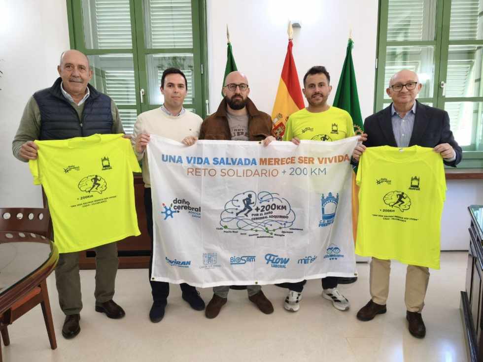 Esta mañana, el alcalde de El Puerto de Santa María, Germán Beardo, junto a los concejales de Deportes y de Empresas y Autónomos, José Ignacio González y Carmelo Navarro, han recibido en el Ayuntamiento a Rubén Puerto, corredor puertorrealeño de adopción y jerezano de nacimiento, que se enfrenta a un desafío deportivo y solidario sin precedentes: recorrer más de 200 kilómetros entre Cádiz y Huelva para dar visibilidad al daño cerebral adquirido.