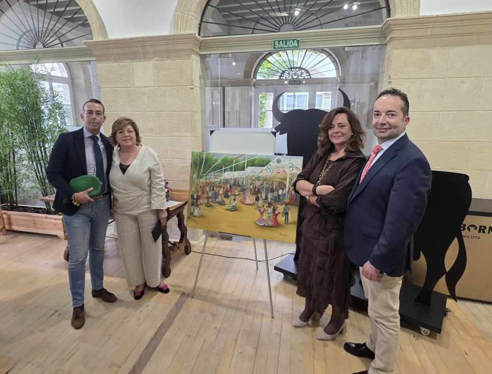 La Peña “La Charanga” presentó anoche su cartel de Feria 2026, una obra de Mercedes Cabreraque se daba a conocer en Bodegas Osborne. El teniente de alcalde de Fiestas, David Calleja, quien descubrió el cuadro junto a la autora, felicitó a Cabrera por una pintura alegre, que capta la esencia de “La Charanga”, en la que se observa una escena de la avenida principal, a la altura de la caseta, donde el público disfruta de este gran encuentro, componiendo una imagen de gran vitalidad y colorido.