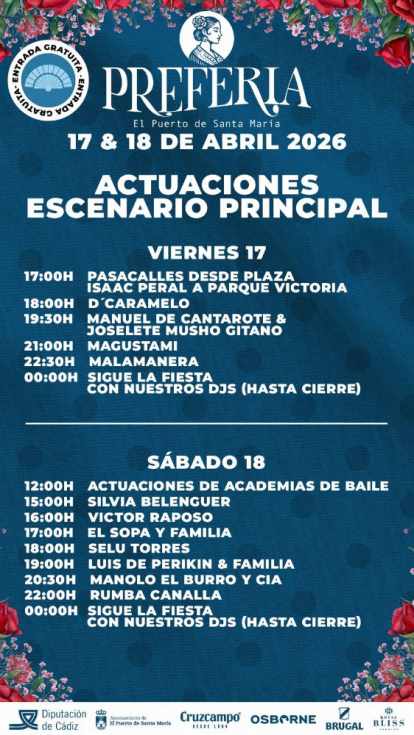 El Puerto de Santa María se prepara para vivir un intenso fin de semana festivo con la celebración de la “Preferia 2026”, que tendrá lugar los próximos viernes 17 y sábado 18 de abril en el Parque de la Victoria.