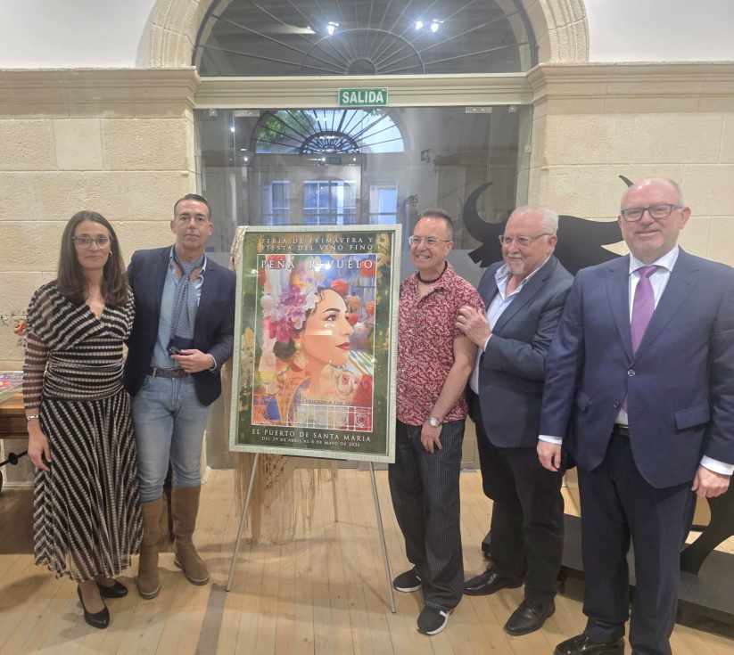El teniente de alcalde de Fiestas, David Calleja, ha acudido a la Peña Revuelo para la presentación del cartel con la que la entidad anuncia su presencia en la Feria de Primavera y Fiesta del Vino Fino, que se extiende del 29 de abril al 4 de mayo y se dedica a la ciudad de San Sebastián. El edil acompañaba al autor de la obra, José Luis Lacasta, en la cita.