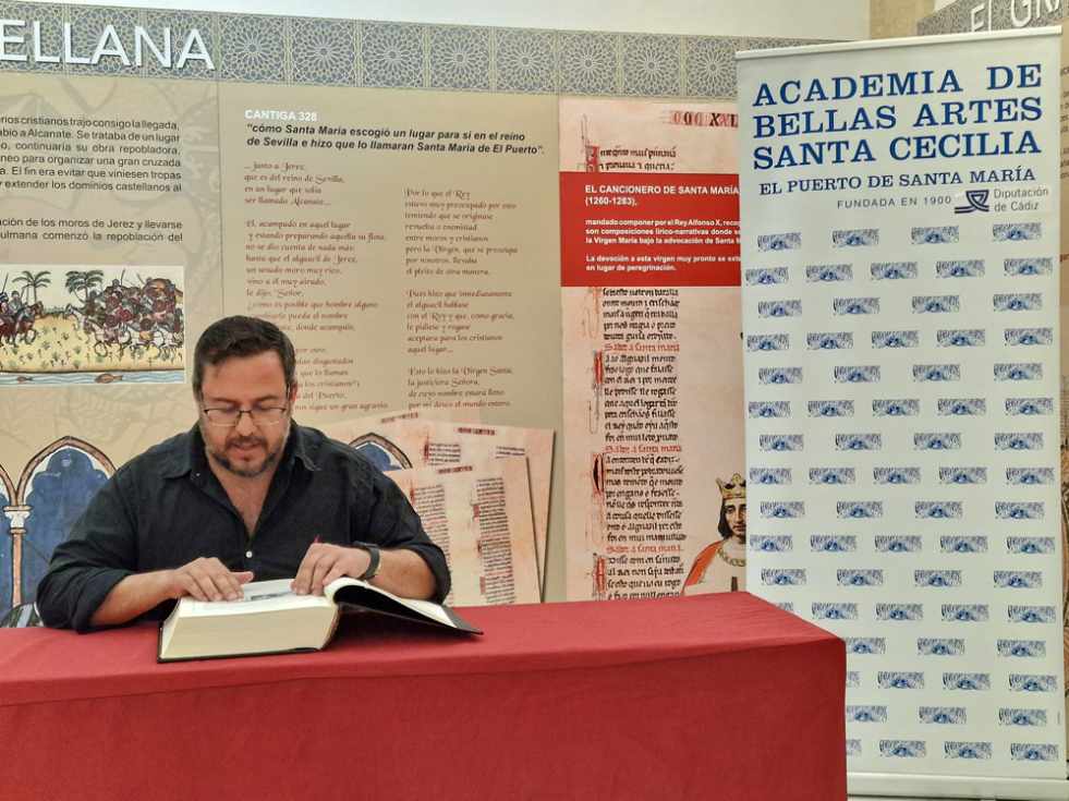 El teniente de alcalde de Cultura del ayuntamiento de El Puerto de Santa María, Enrique Iglesias, ha acompañado hoy a la Academia de Bellas Artes Santa Cecilia en la tradicional lectura continuada del Quijote, que la entidad realiza desde 2003 en conmemoración del Día Internacional del Libro, efeméride que se celebraba el pasado jueves.