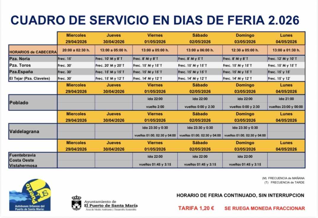 Desde el Ayuntamiento se anima a todos los portuenses a que hagan uso del transporte público para ir y venir del Recinto Ferial, y así evitar las largas colas de vehículos particulares a la entrada y salida de la Feria.