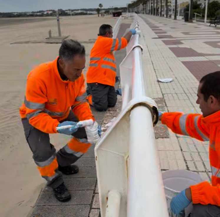 En estos días, el personal municipal actúa en la barandilla del paseo marítimo de Valdelagrana, donde se están eliminando los restos de óxido y renovando la pintura para garantizar su correcta conservación y mejorar su aspecto.